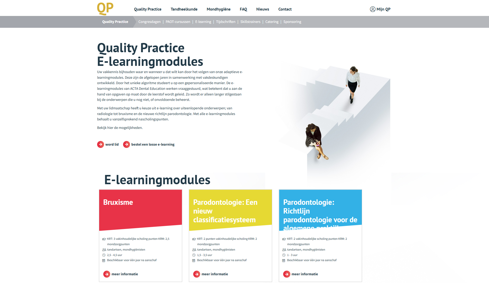 Via QualityPractice lidmaatschap biedt ACTA tandartsen en mondhygiënisten betrouwbare, klinisch relevante en actuele nascholing aan, waarmee KRT/KRM punten kunnen worden behaald. Dit online programma wordt uitgevoerd op het platform van E500.